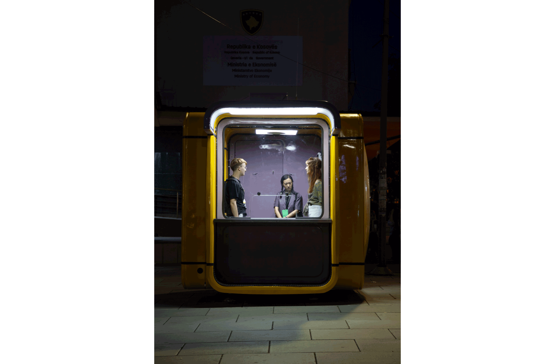 Students from Hochschule für Bildende Künste Dresden (HfBK) have been working in close collaboration with students from the Faculty of Arts at Universiteti I Prishtinës and the Kosovo Amateur Radio Association (SHRAK) to develop a series of radio transmitted sound works which will be broadcast from the 9th floor of Grand Hotel Pristina to a recently restored Saša J. Mächtig K67 kiosk located on Zahir Pajaziti Square in the centre of Prishtina.